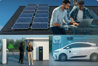 Diseñamos e implementamos soluciones como paneles solares, cargadores para vehículos eléctricos, monitorización y estudios de eficiencia para un futuro más verde.
